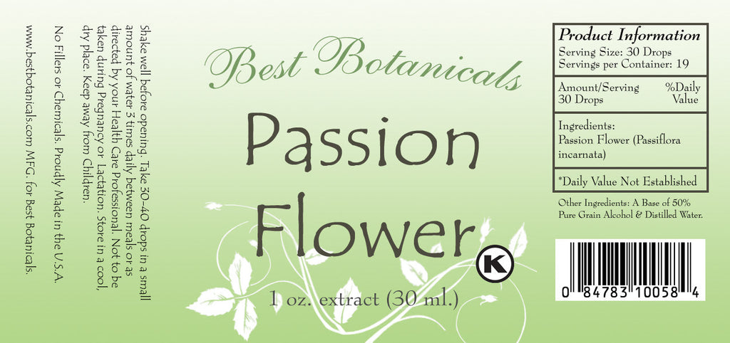 Passion Flower Extract 1 oz. 50% pure grain alcohol base.