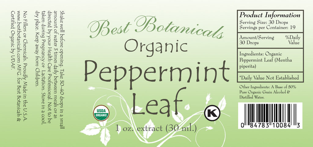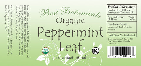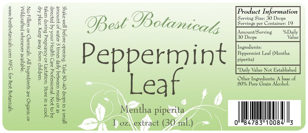 Peppermint Leaf Extract 1 oz. 50% pure grain alcohol base.