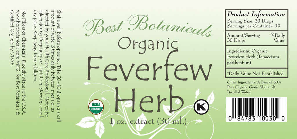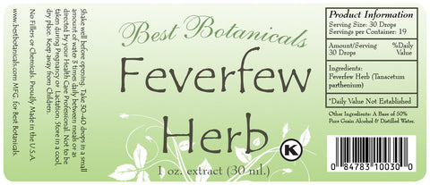 Feverfew Herb Extract 1 oz. 50% pure grain alcohol base.